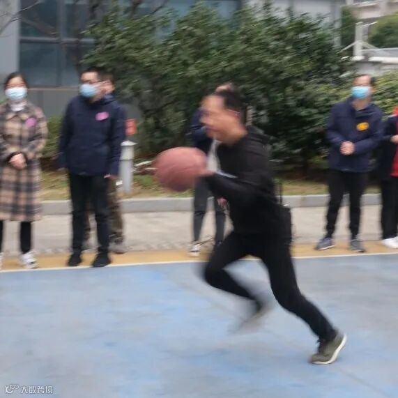 第一轮是6*50米篮球接力赛。每组六名队员参加,边拍边跑,最先完成的队伍获胜。瞧,有的队员动作行云流水,颇有灌篮高手的风范。有的队员则是连滚带拍,实现了篮球和足球的无缝衔接。队员精彩生动的表现赢得了观众们的阵阵喝彩。