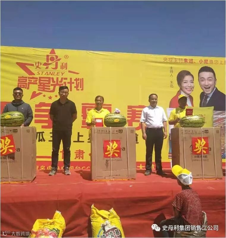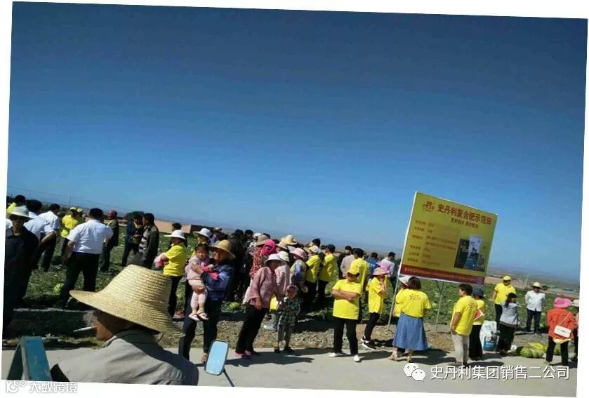 7月25日靖远县高湾乡丁庄村,为了提高史丹利复合肥在靖远市场上的知名度,提高史丹利品牌的影响力,特举办史丹利高产星光计划示范田观摩会与瓜王争霸赛,示范田使用双倍系列产品,西瓜长势明显比其它化肥效果好,西瓜个大,叶片色泽好,糖度高,用肥效说话,提高农户对肥料的认可。