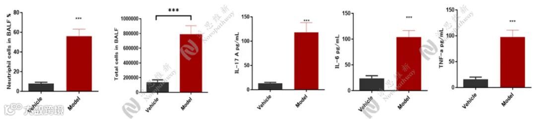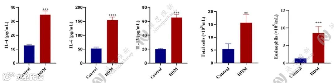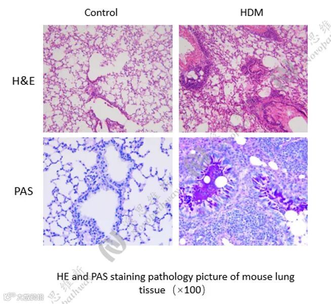 - 人类过敏性哮喘主要由Th2型免疫反应驱动。OVA联合氢氧化铝佐剂的方案能高效和特异地诱导强烈的嗜酸性粒细胞炎症和Th2细胞因子反应(嗜酸性粒细胞哮喘)。在OVA致敏基础上,联合以脂多糖可进一步激活Th17细胞,产生IL-17以招募中性粒细胞的关键细胞因子,将中性粒细胞从血液中招募到肺部,形成以中性粒细胞为主导炎症表型。