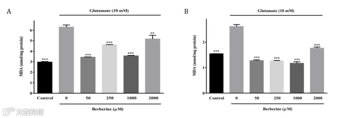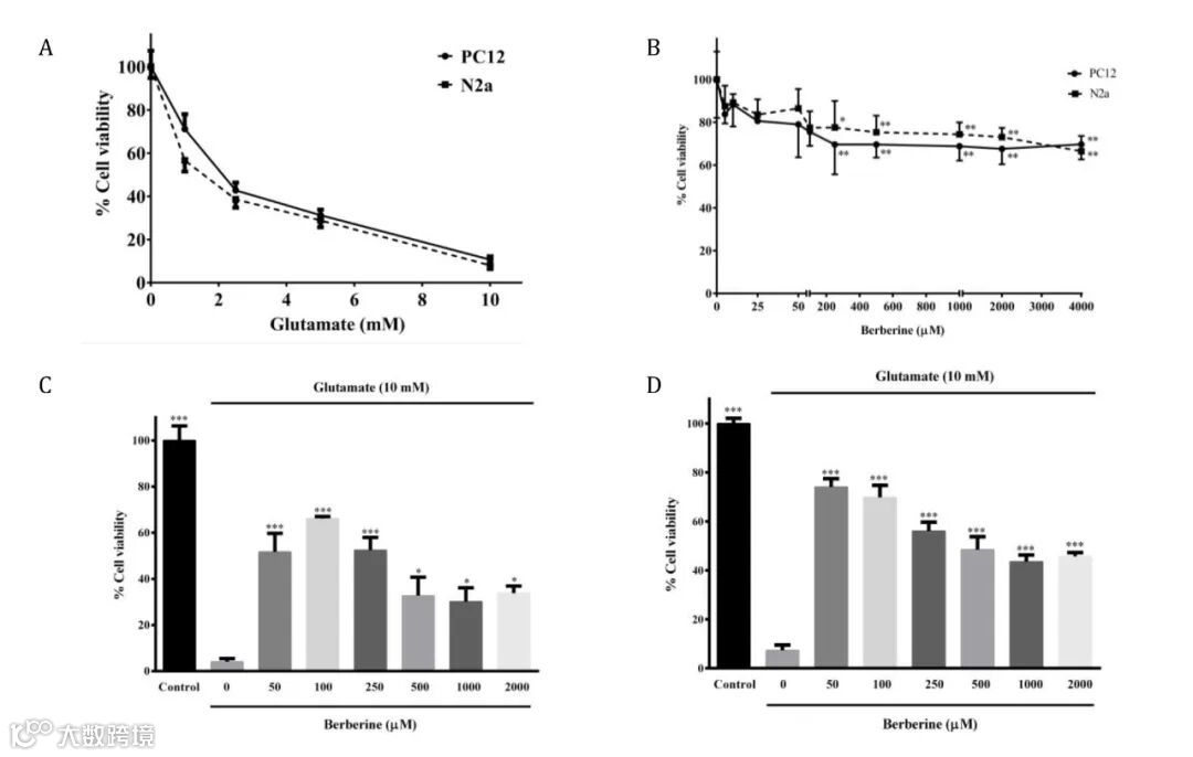 2:Sadeghnia H R, Kolangikhah M, Asadpour E, et al. Berberine protects against glutamate-induced oxidative stress and apoptosis in PC12 and N2a cells[J]. Iran J Basic Med Sci, 2017, 20(5): 594-603.