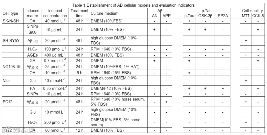 甲醛是毒性最强的有机化合物之一,可促进AD的主要病理特征形成,包括Aβ沉积、Tau蛋白过度磷酸化和神经元丢失,同时伴有细胞功能障碍甚至细胞凋亡。常采用0.35 mM的FA诱导N2a细胞,建立AD模型。