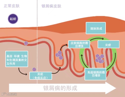 银屑病是一种复杂的疾病,它的病因目前尚未完全明确,其发病和遗传、感染、免疫、精神等多种因素有密切联系,同时也受外界自然环境因素的影响。