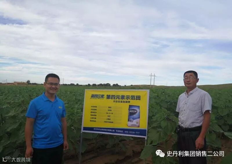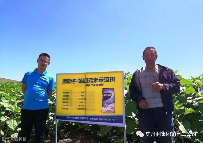 黄羊城镇的王大哥,是黄羊城村的第四元素村级联系人,100亩葵花全部用的第四元素产品,他告诉我们,今年葵花亩产保底600斤,好多农户向他打听用的什么肥料,他请我们赶紧把追肥送过来,农户们急着跟他要呢!