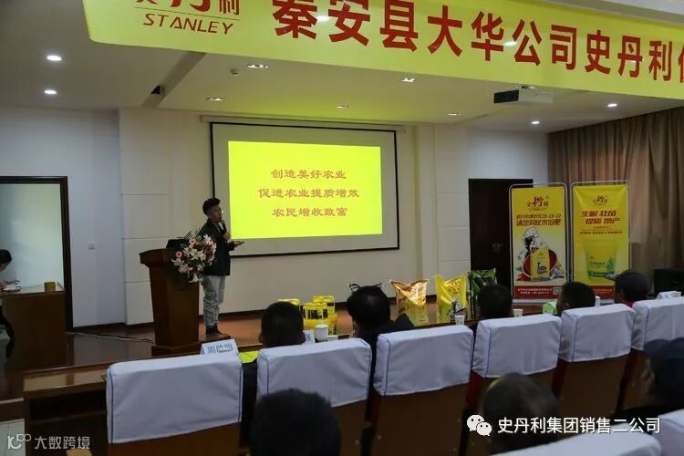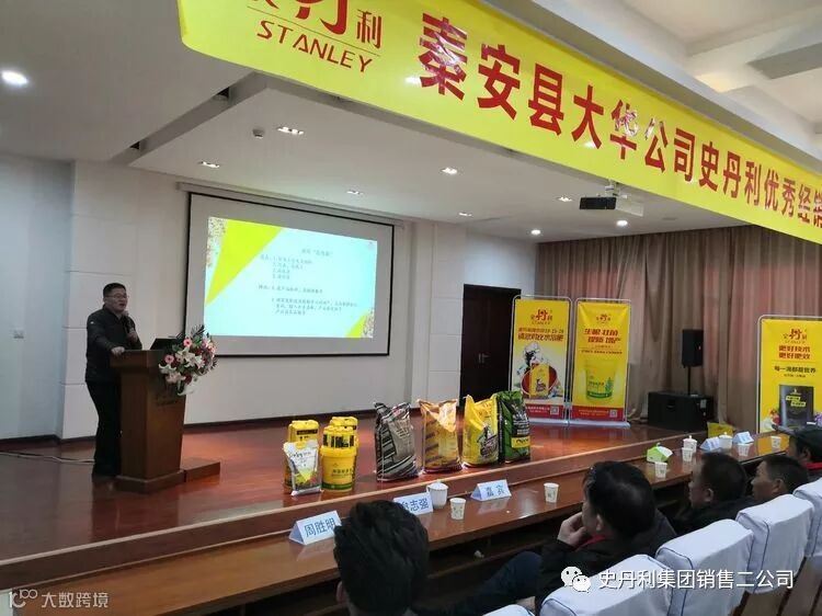 秦安县大华农业生产资料有限公司总经理贠志强为本次会议致辞。秦安县大华农业生产资料有限公司是史丹利优秀的合作伙伴,不仅多年坚持专营专卖,而且在贠总的带领下,将史丹利品牌推广成为秦安县家喻户晓、值得信赖的大品牌!贠总首先表示非常感谢史丹利公司为本次会议的准备和支持,从国内国际形式分析当前的各行各业都向追求高品质发展的方向前进,农资销售也要从服务开始着手。大华公司将与史丹利公司友谊永恒,合作共赢!