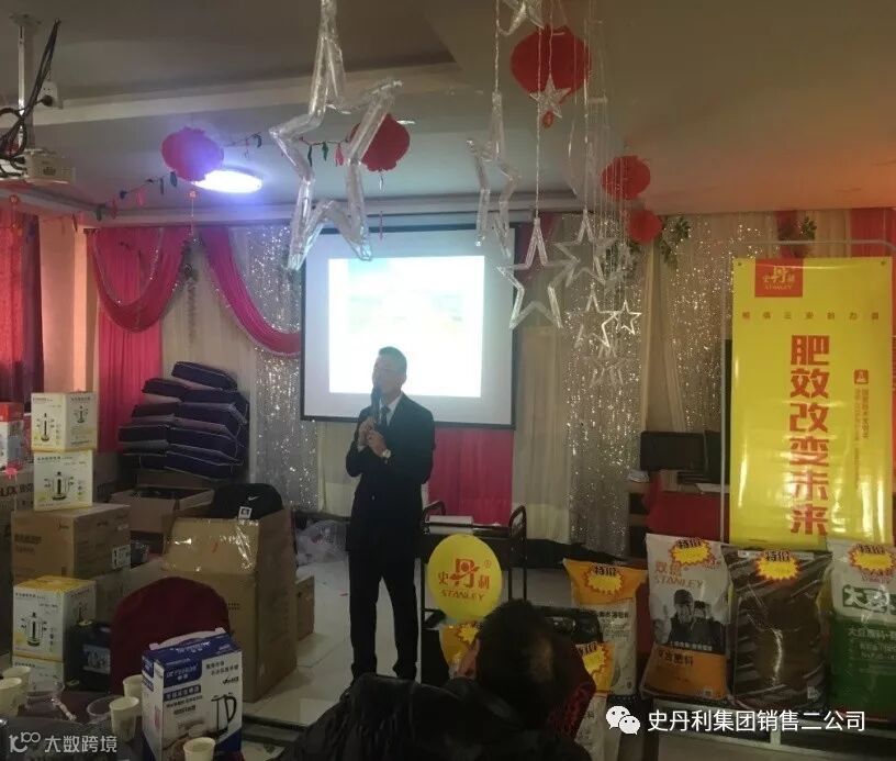 会议第二项,由史丹利农业集团南疆销售公司南疆二区经理王永致辞,并从史丹利公司、产品介绍以及蚯蚓测土三个方面展开讲解。