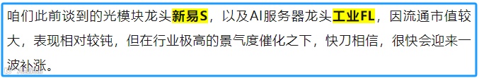AI服务器龙头工业FL,股性相对较钝,但确定性强;