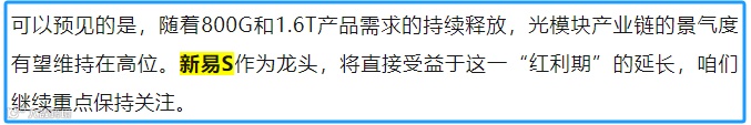 随着AI数据中心的建设,高速光模块已成为与算力芯片、存储并列的核心基础设施,而中际XC、新易S这类龙头公司,已经深度绑定海外AI巨头,将持续受益于本轮AI产业的蓬勃发展。