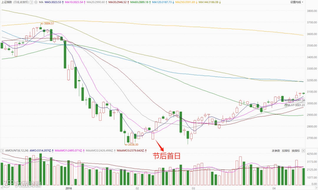 2016年春节:沪指节后整体以弱反弹为主。市场从节前熔断的阴影中缓慢走出来,进入到筑底周期。