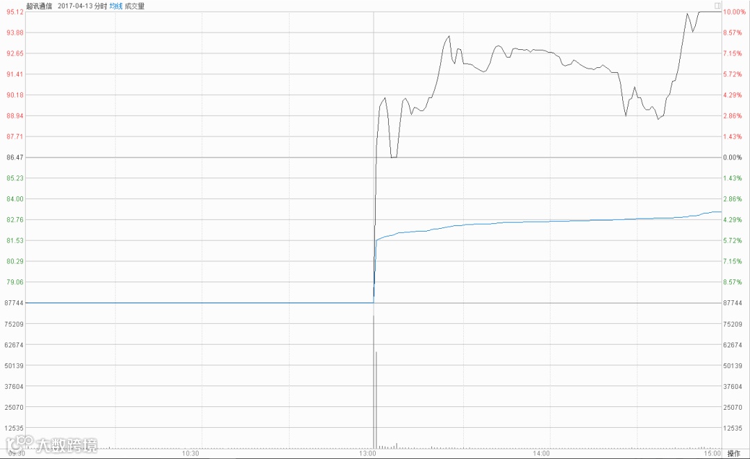 我们打开当日的分时图,主力资金选择在午后撤单并且大幅买入,打开跌停板,吸引跟风资金,尾盘尾盘,单个交易日涨幅达到惊人的20%。