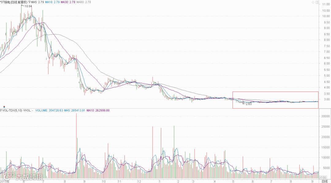 我们来看下面一个案例。这只个股股价不到3元每股,同时从K线形态来看,在经历此前的连续下跌之后,目前是到了一个相对低位,符合很多散户的审美。