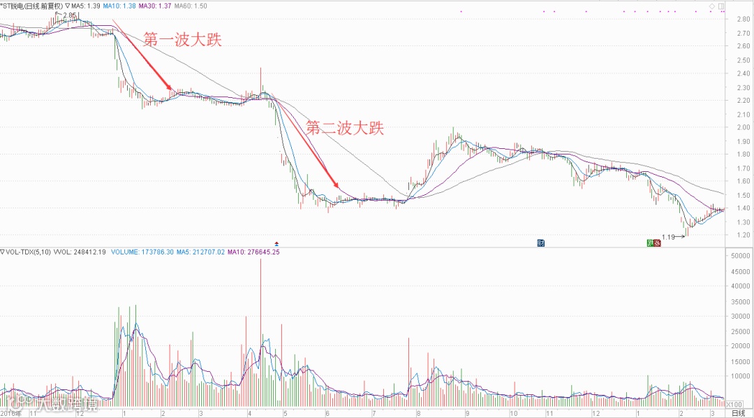 那么接下来,我们再看看,该股在矩形方框后面发生了什么?由于公司业绩大幅预减,大股东疯狂减持,从下图中最高的2.99元/股跌至1.36元/股,股价遭遇腰斩还不止,也就是你100万进去,最后出来50万都没有,而这仅仅发生在短短不到半年的时间,所以,低价股真的好吗?