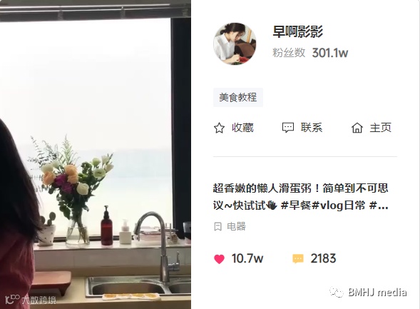 早餐美食达人,延续达人专注早餐的清新风格,提升产品调性;同样使用电饭煲做快手精致早餐,回归“万物皆可粥”话题