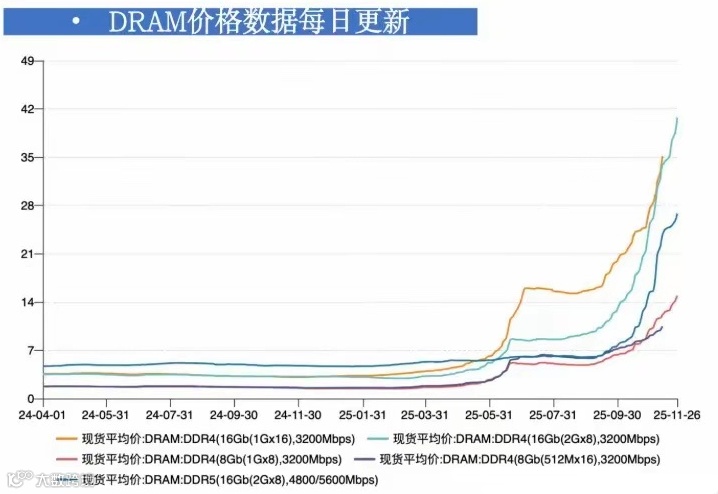 OpenAI以“星际之门”为名,包下了三星和SK海力士全球40%的DRAM内存芯片产量,导致市场供需失衡。这直接引发了存储现货价格的大幅上涨。