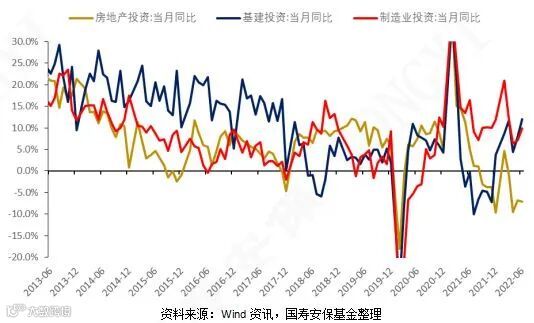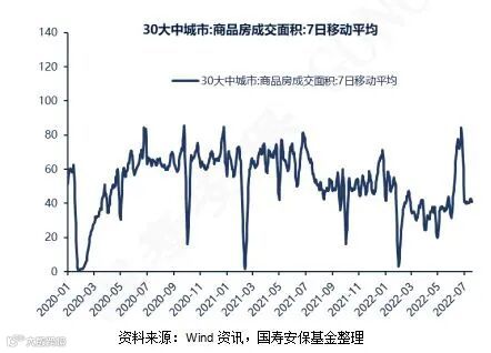 逆周期力量方面,当前仍然呈现地产较弱、基建积极的格局。地产方面,受开发商资金紧张的影响,地产停工现象较为突出,严重拖累了房地产投资;另一方面,在销售端,由于房企暴雷事件影响,居民对于期房的信心弱化,地产放松政策难以发力见效。从房地产销售高频数据来看,受疫情好转和地产放松政策支撑,30城大中城市商品房成交数据在6月有显著修复,但近期又出现二次探底的特征,表明地产复苏难以一蹴而就。