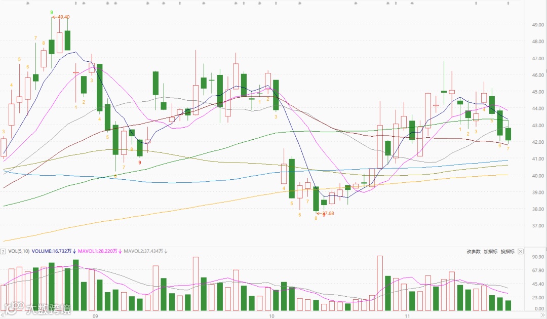 一是11月18日文章提及的AI标的——SZ数码。今天全天走势基本与大盘同步,目前技术面跌至下方重要支撑位,仍处于可以配置的区间。已经完成配置的,耐心等待大盘企稳。
