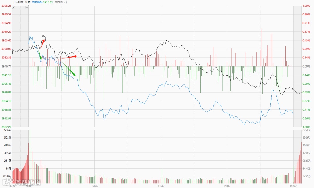 在昨天的文章今晚,巨头财报!中,我谈到了沪指分时图中的一种特别形态——鳄鱼嘴,即“代表指数实际走势的曲线向上,而代表多数个股走势的曲线向下”,两根曲线的差距不断被拉大。
