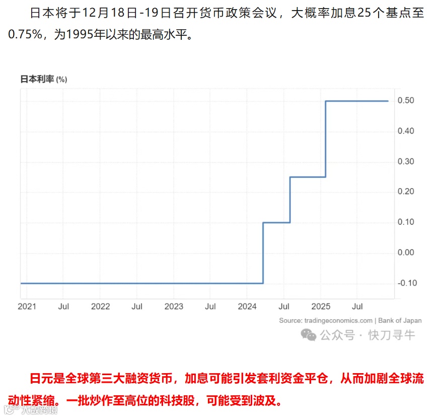从后视镜去看,我们可以总结出很多原因,如低迷的经济数据,海外市场波动加大,AI商业模式被质疑,重要会议未看到更多超预期政策等。但其实,最重要的一个原因就是,快刀近期反复提及的日本加息。