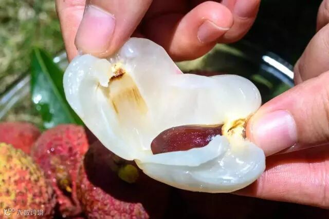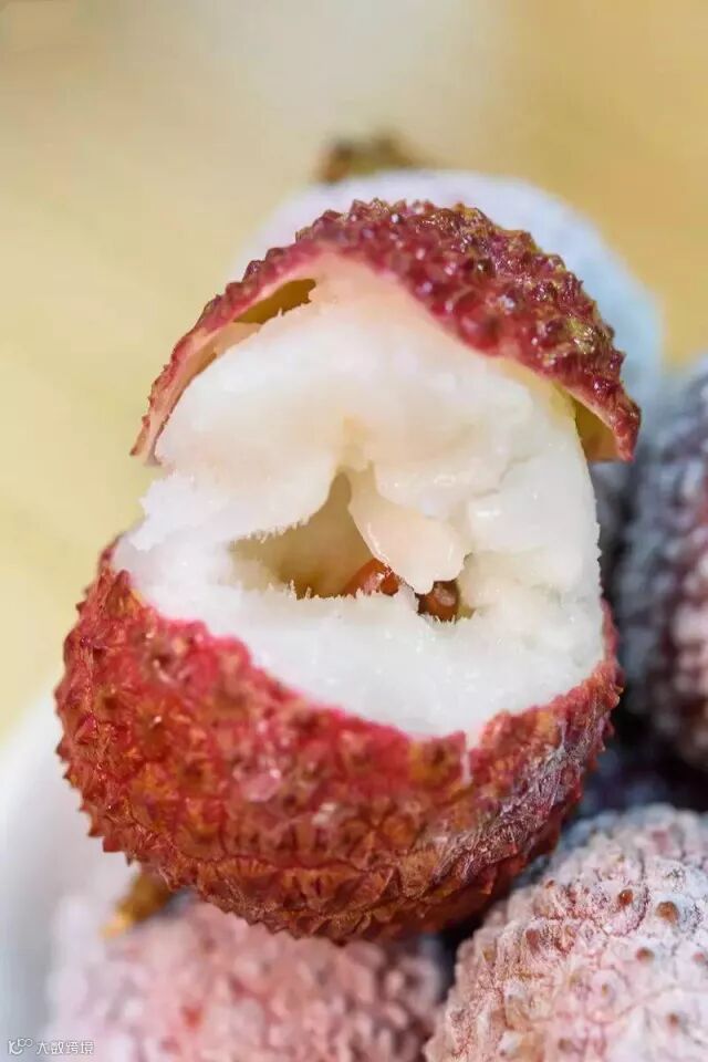 6.吃荔枝时,把剥开果壳后的一层薄薄的白膜,和肉一起吃下去不上火,果膜有点涩,嚼到果肉时,会一下鲜甜起来。