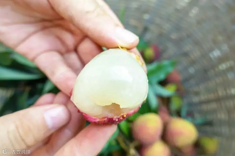 荔枝皮呈浅红色,薄且脆