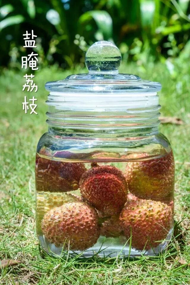 相对于荔枝肉蘸盐水,我更喜欢盐腌荔枝。荔枝泡过盐水后皮变软了,吃起来果肉更鲜甜柔软。好像还有保鲜的作用。