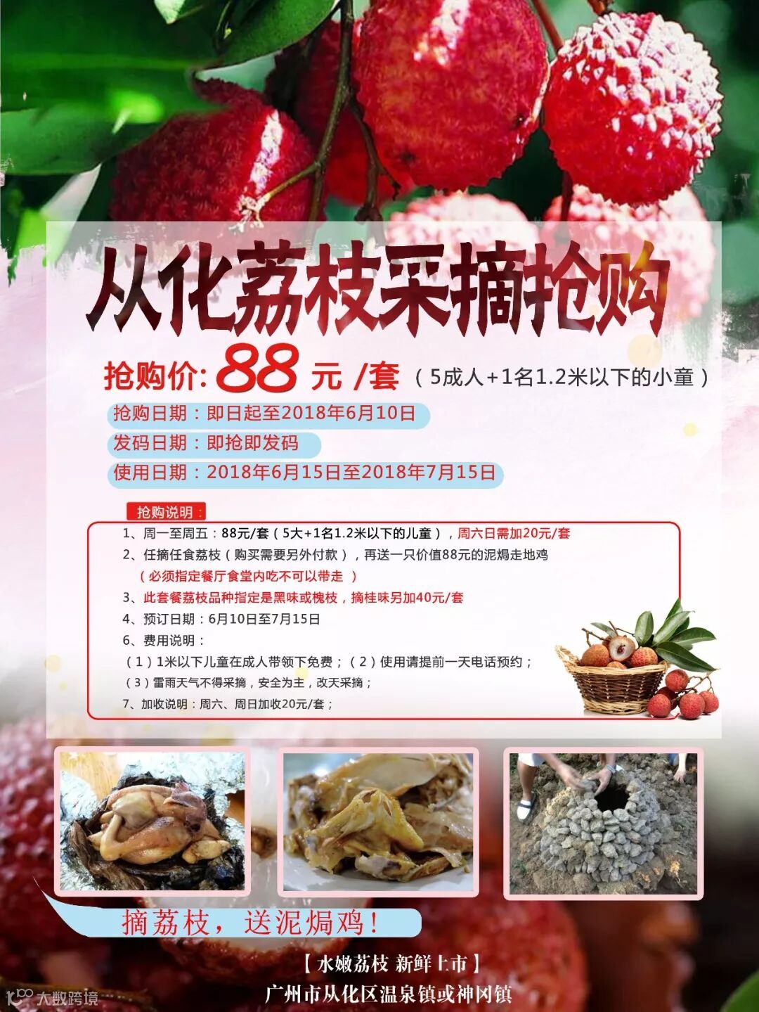2、任摘任食荔枝(购买需要另外付款),再送一只价值88元的泥焗走地鸡