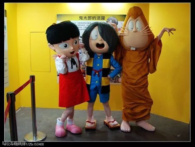 两侧树立着80座妖怪铜像,连路灯都特别出现鬼眼造型,仿佛在街上送往迎来。