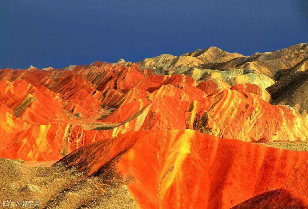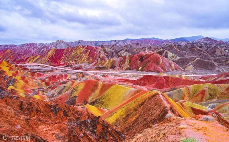 位于甘肃省河西走廊中段的张掖市。雨水冲刷的痕迹深深地烙印在岩山上,各种色彩交织,斑斓夺目,美轮美奂,犹如画卷一般。