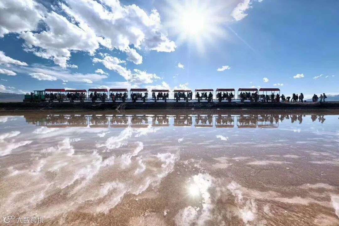茶卡盐湖,湖面都是晶莹剔透的盐块像一面镜子,在阳光照射下更是显得水天一色,现实与梦幻交错犹如梦境。想要网红同款照片的可以来这里,绝对能满足你的需求。