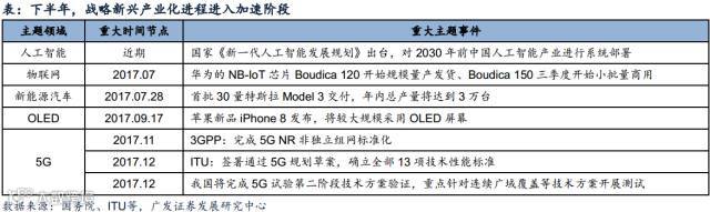 新兴产业主题:下半年重点推荐主题包括新能源汽车、5G、OLED、物联网、人工智能等。