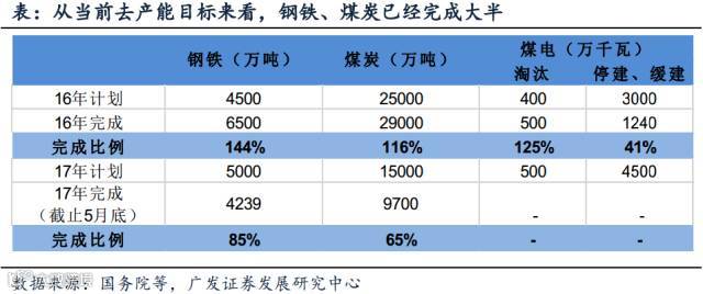 2)今年供给侧改革增量较明显的领域包括电解铝、火电等。从17年政府工作报告来看,供给侧改革已经进入“扎实有效去产能”阶段。目前,钢铁、煤炭去产能任务均完成大半,其改革考核目标主要在资产负债率上,下半年去产能重点可能会在政策考核压力下从钢铁、煤炭过渡到火电等其他领域。
