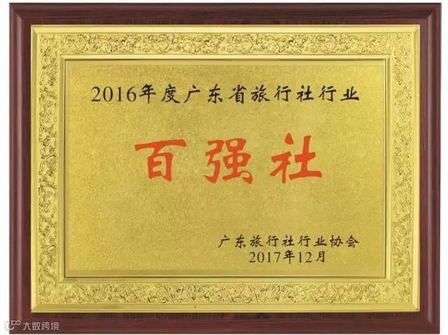 继连续获得百强旅行社后,再一次荣获广东省旅行社行业企业100强!