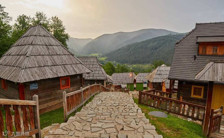 完全遵照塞尔维亚传统式样,大小木屋围绕典型斯拉夫山区式样的木教堂排列。所有的木屋都是货真价实的山民废弃老屋,童话村落