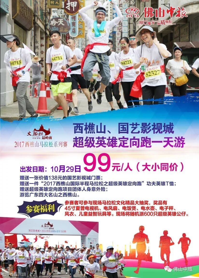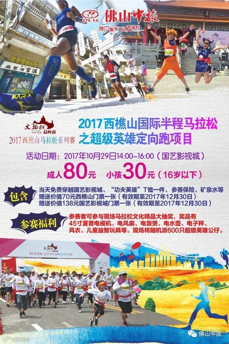 2、赠送一件“2017西樵山国际半程马拉松之功夫英雄定向跑”参赛T恤;