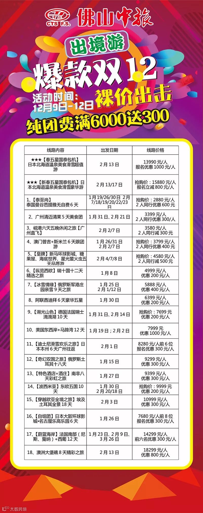 咨询或预定可联系您身边的佛山中旅营业部哦