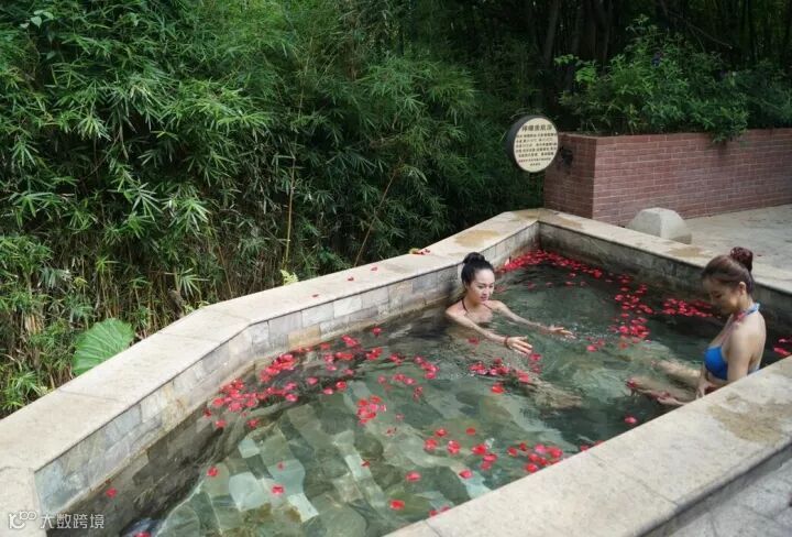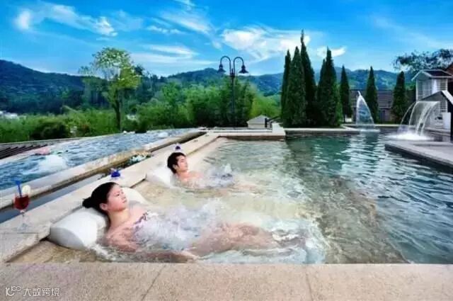 躺在温泉理疗池里,放松自己~