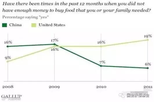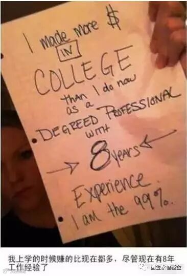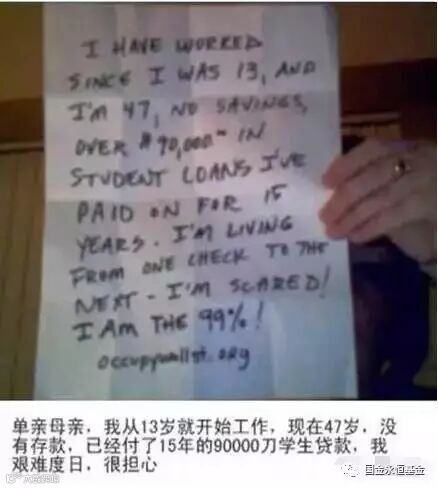 图上那2张纸是美国的占领华尔街运动的参与者们写的为什么参与这个运动,下面是盖洛普的民意调查结果表明美国贫困率大幅度上升,中国的贫困率显著下降。