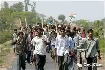 比较其它发展中国家,没有一个搞得了东亚的土改模式,尤其是印度,甘地想搞土改,没搞成。我十次去印度,东西南北城市乡村跑遍了,特别是动乱地区,游击区。白天警察所长陪我,晚上民兵队长陪我。这就是实际情况,北方山区政府根本没法控制,警察就那几条破枪,知道打不过,所以晚上关门了,民兵队长控制。民兵队长他爹就是被政府打死的,世仇。下边的图是反抗征地的农民运动,印度的民间基本上是不可被官方控制的。