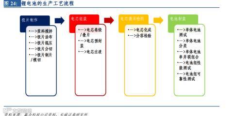 锂电池的生产工艺分为极片制作、电芯组装、电芯激活检测和电池封装四个工序段。 涂布机、卷绕机、分条机、模切机等 前两个工序段的设备生产及加工要求较高,因而售价较高。后两个工序段对产品一次质量影响相对较小,对设备要求也相对较低,相应的售价较低。