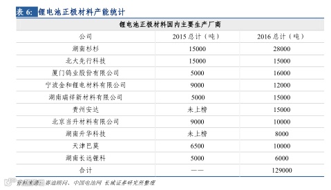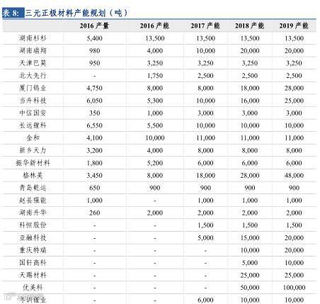 2016 年正极材料产销两旺,行业前景广阔,多家正极材料企业不断扩产,且有多家新进入者涉足正极材料及上游原材料,其新增产能将于 2017 年开始陆续投产,行业竞争将越来越激烈。根据《中国锂电池行业年度竞争力品牌榜单》,2016 年在正极材料生产商十大企业中有八家大约有 20%以上幅度的增长。这可以理解为正极材料生产商积极为明年布局,17 年正极材料供应商产能有望进一步扩大。
