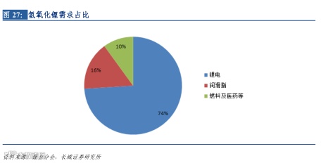 目前锂电已经成为氢氧化锂的下游主要需求,占比达到70%左右。目前三元正极NCM811、NCM622 及 NCA 均已采用氢氧化锂为主要材质,水热法制备磷酸铁锂(LFP)产品,也需要使用氢氧化锂。未来随着动力锂电池需求的提升,氢氧化锂需求有望大幅增长。