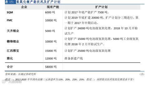我们预计 2017 年全球电池级氢氧化锂需求量有望达 2.5 万吨左右,2018 年有望达 4.7 万吨。