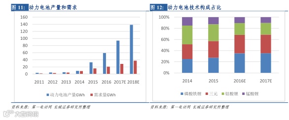 受骗补事件影响和新能源汽车的补贴延迟发放,导致今年中小车企现金流承压;而补贴政策调整出台时点一再低于市场预期,影响了全年新源汽车放量。2016 年新源汽车产量 51.8 万辆,同比增长 36.7%;而 2016 年中国汽车动力电池产量 30.8GWh,同比增长82%。 动力电池的增速超越新能源汽车增速,我们认为主要原因有两点:1 )2015 年底生产的部分整车需补装电池;2 )2009-2013 年生产的部分整车需要换装电池。