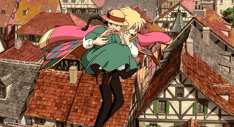 当苏菲独自一人走在僻静的小道,被两个士兵调戏的时候,帅气的哈尔身披斗篷从天而降,带着苏菲在小镇的上空飞舞,轻踏房檐,从空中俯瞰整座充满童话色彩小镇。