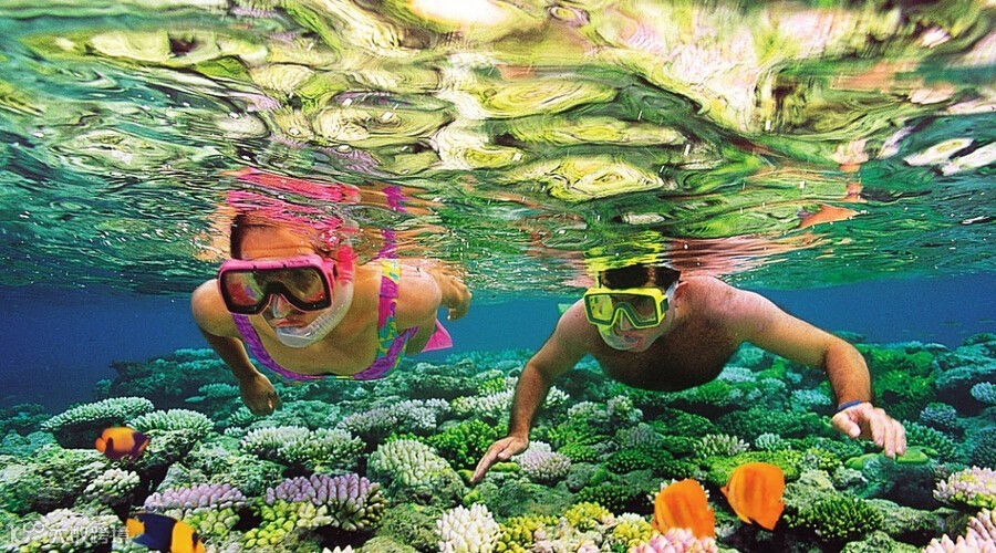 乘坐【玻璃底船】或浮潜(二选一),领略壮丽迷人的大堡礁奇观,把海底七彩缤纷的鱼群和色彩斑斓的珊瑚美景尽收眼底。
