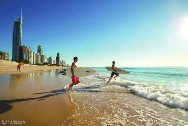 黄金海岸距布里斯班市区96公里,因绵延长达32公里数的金色海滩而得名,这里是太平洋暖流冲击地带,终年有日照,气候宜人。
