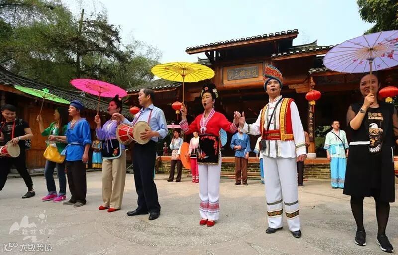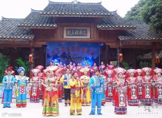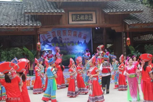 2.刘三姐民族风情表演:千人竹竿舞、蚂拐舞表演、赶歌圩表演