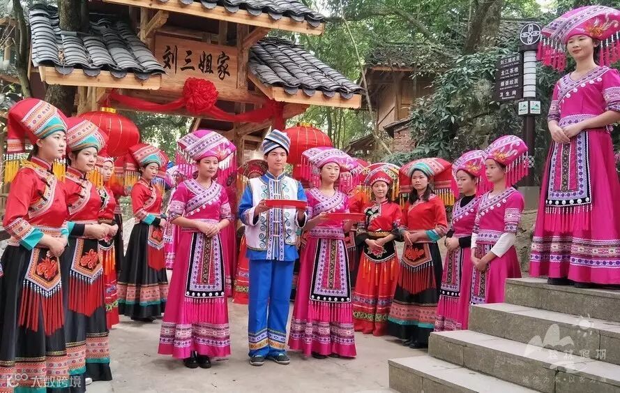 1.大型壮族古典婚礼仪式:绣球相亲+歌圩闹情
