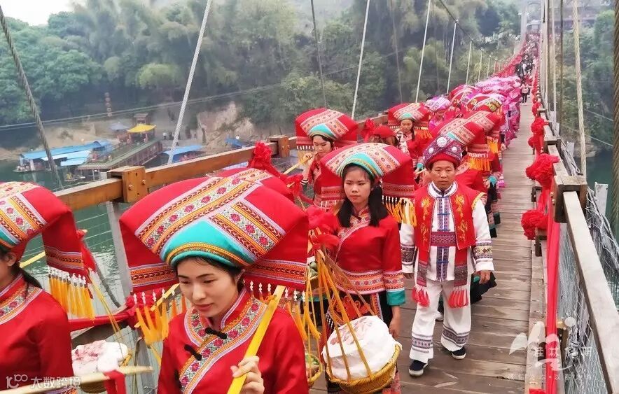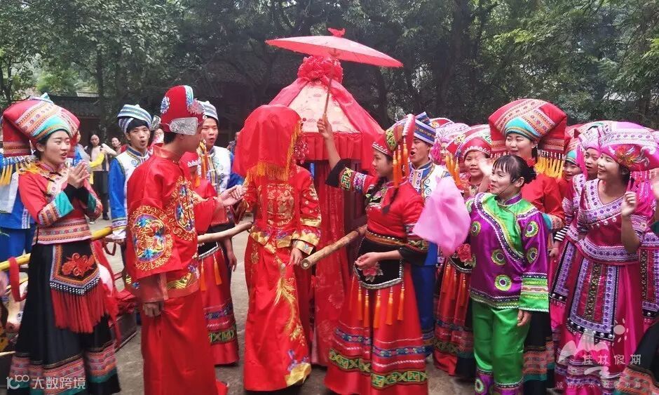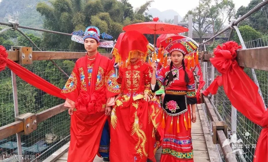 壮族古典婚礼仪式以其独特的魅力吸引了全国各地媒体的关注。绣球相亲、起轿接亲、闹亲、抬新娘到歌圩场、歌圩闹情,参与其中感受的浓浓的古典婚礼的热闹欢喜。