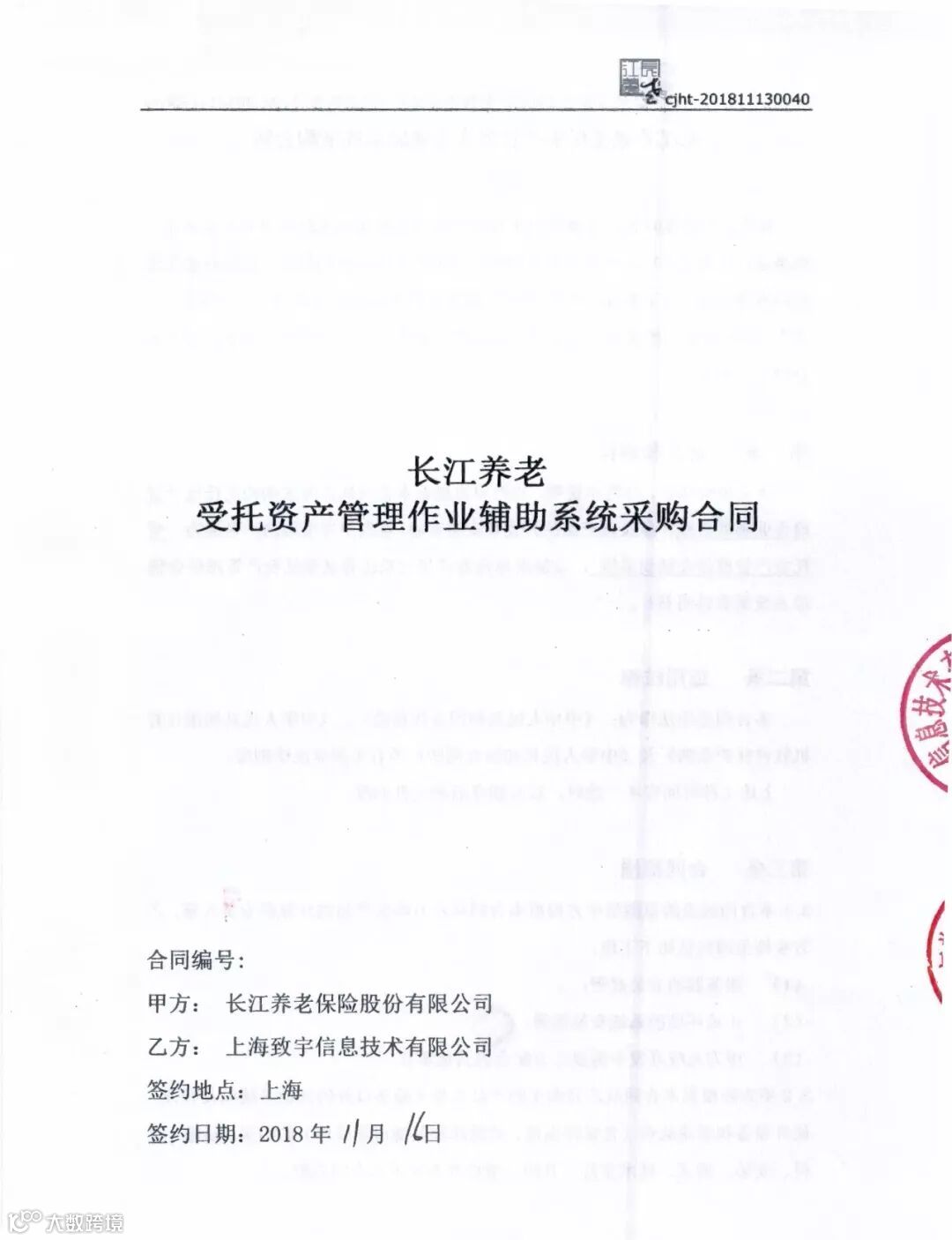 11月16日,上海致宇与长江养老保险股份有限公司签署受托资产管理作业辅助系统合同。