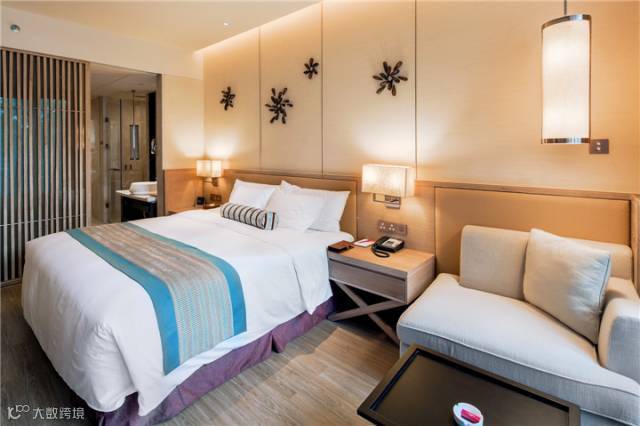 木质的地板,原色与米色营造出温馨舒适而又富有小资情调的入住环境。推开落地玻璃窗,感受扑面而来的大海的气息,这一刻豁然开朗。